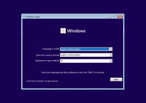 3. Đợi đến màn hình Windows Setup (xanh dương).